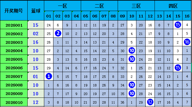 双色球上期开出奖号:红球04、09、10、15、19、26,蓝球12;前区和值83,跨度22,三区比3:2:1。