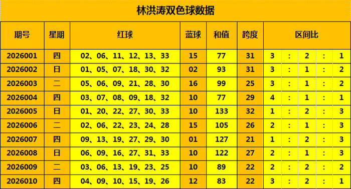 历史上双色球第011期已经开出了23期奖号了,本期为双色球第2026011期开奖: