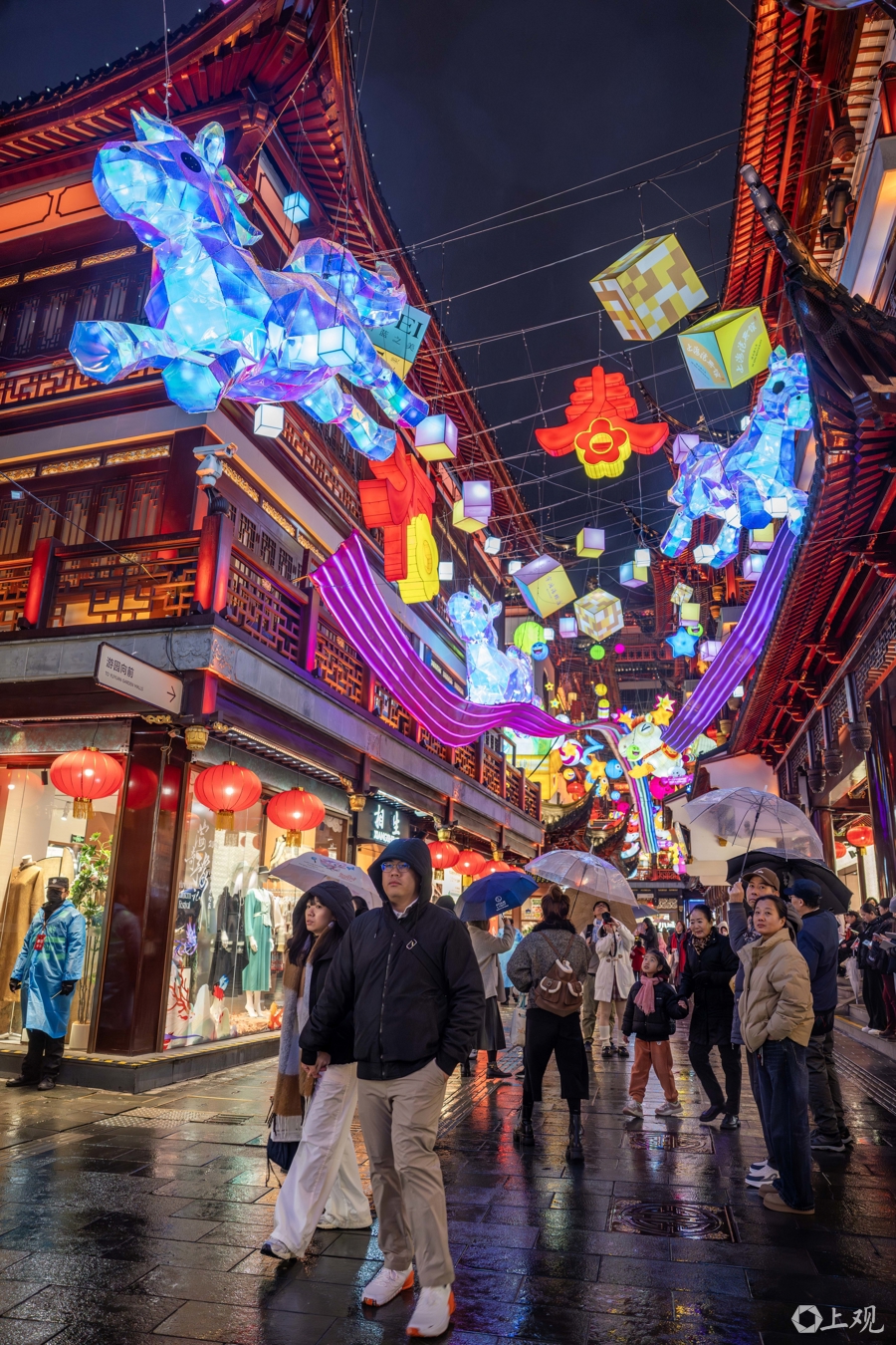 这场为期36天的海派年味盛宴(豫园民俗艺术灯区除夕不亮灯)首次突破传统地理边界,将灯区延伸BFC外滩金融中心、古城公园、方浜中路、福佑路及外滩,形成“六区一体”全新格局。