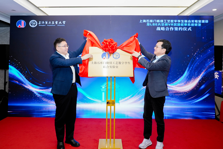 现场,“上海石库门修缮工艺数字孪生联合实验室”揭牌。静安置业建筑装饰与二工大共同签署战略合作协议和项目合作协议,确立了双方长期稳定的合作关系,为后续各项工作的有序推进奠定了坚实基础。现场,与会人员还共同见证了“万门之城”——上海石库门修缮数字孪生实验室暨LBE大空间VR沉浸叙事系统项目的启动,聆听了研发团队的主题介绍。