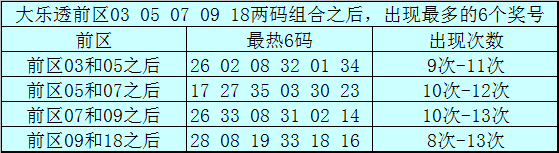 前区两码03和05和之后透露最热的6个号码为:26、02、08、32、01、34;