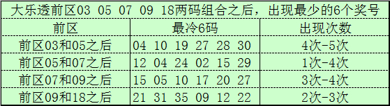 前区两码03和05开出之后,透露最冷的6个号码为:04、10、19、27、28、30;