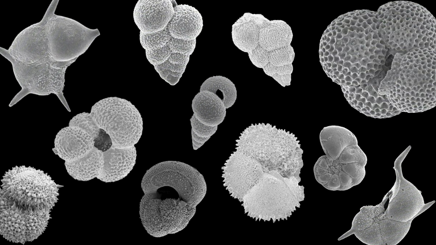 扫描电子显微镜下的有孔虫化石图像(由论文作家之一Bridget Wade教养拍摄)
