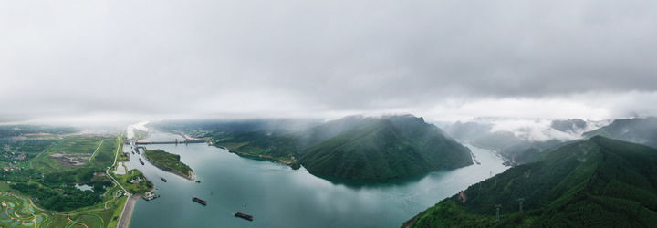 溯西江而上,参加广西桂平,巍峨的大藤峡水利枢纽横锁江面。