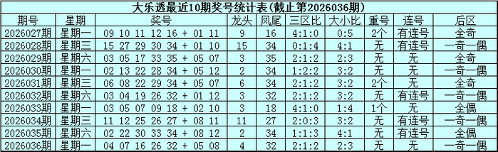 上期奖号中开出大小比为3:3,邻孤传比为2:3:1,开出3组连号02,03,04,31,32。