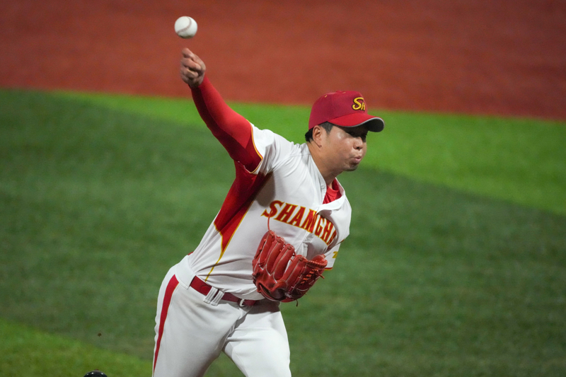 上海本土选手宫海成,年少时就有留洋经历,如今是上海队、国家队的优秀投手。 新华社记者 王松 摄