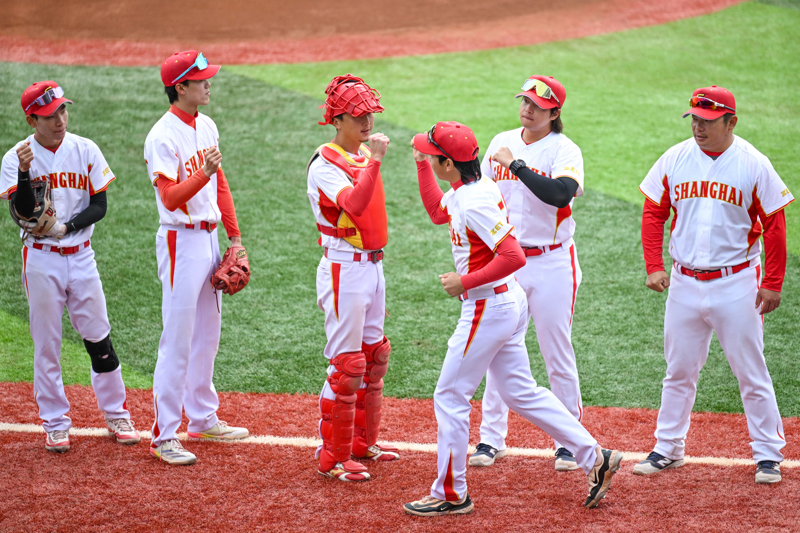新华社照片,中山(广东),2025年11月20日\n 11月20日,上海队球员在赛前入场。\n 当日,在广东省中山市举行的第十五届全国运动会棒球3-4名决赛比赛中,上海队4比3战胜北京队。\n 新华社记者 丁磊 摄