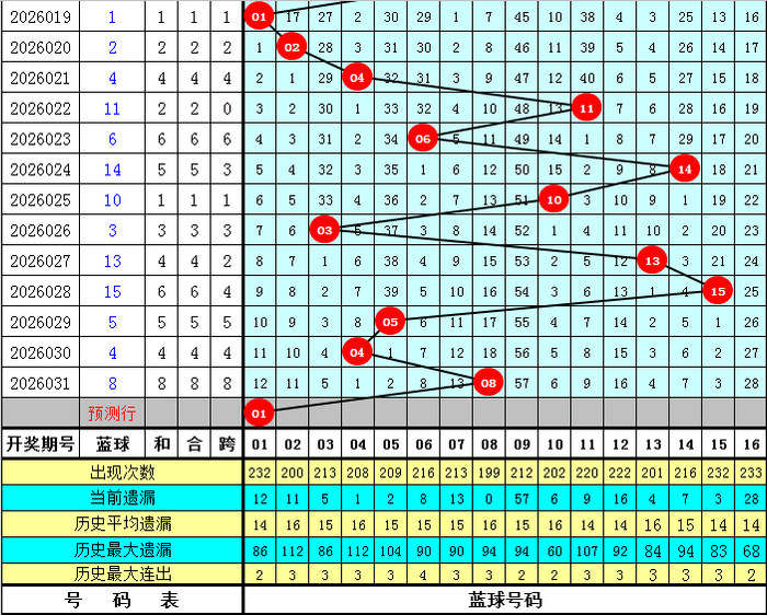 蓝球分析:上期蓝球为2路号码08,高潮4个点位,最近50期开奖中,蓝球号码012路落号比为13:24:13,前10期蓝球012路落号比为3:3:4,本期蓝球温存1路号码,独蓝参考01。